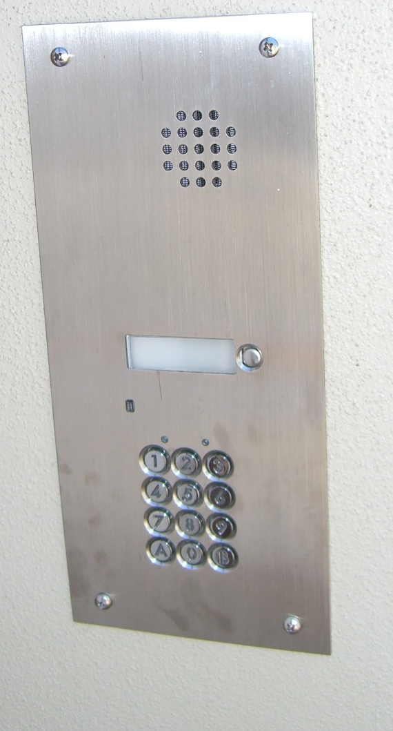 Audio handset with weatherproof door bell, plus optional keypad integrated behind one stainless steel flush mount plate. >>> Pictured here >>>